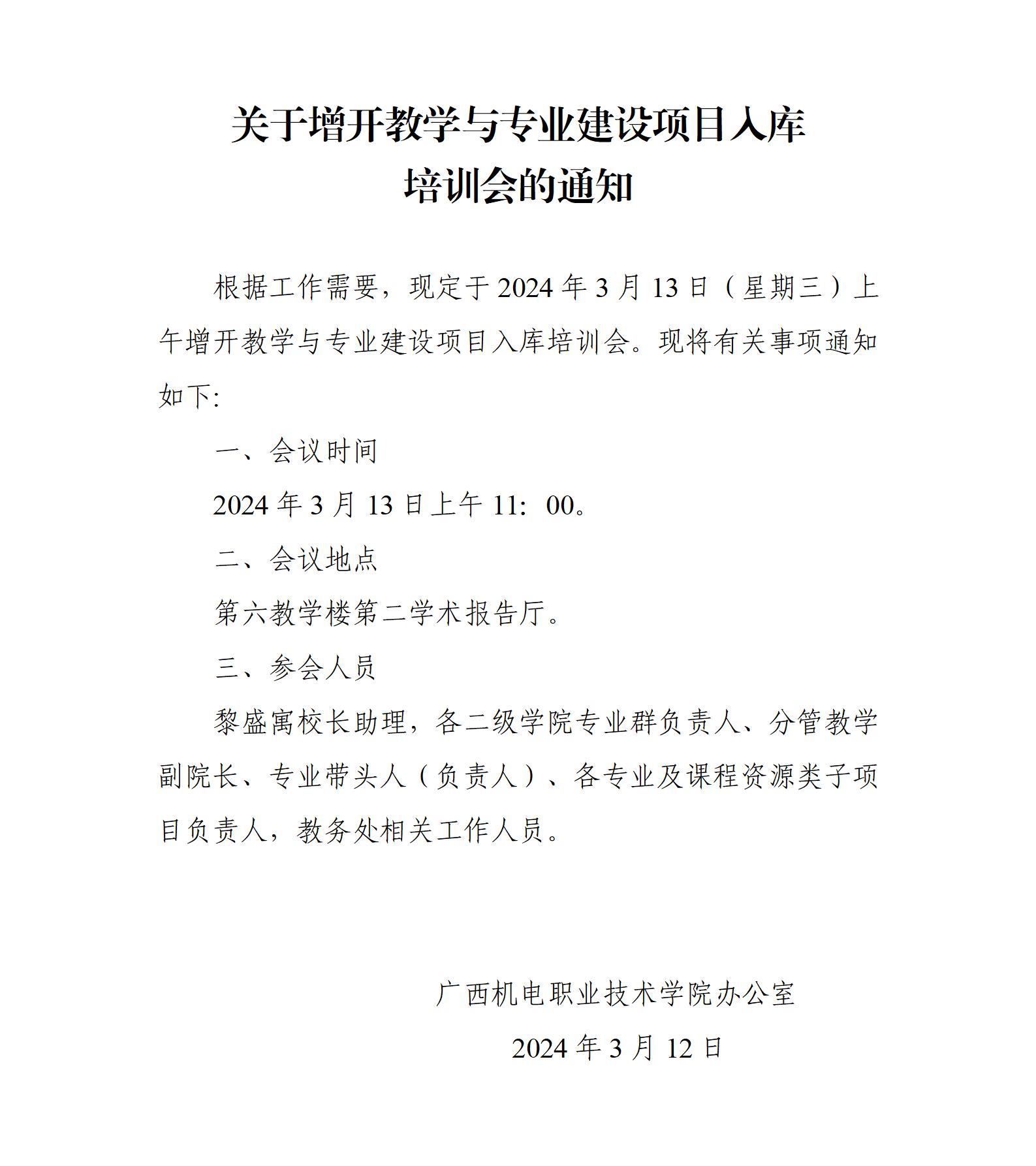 关于增开教学与专业建设项目入库培训会的通知