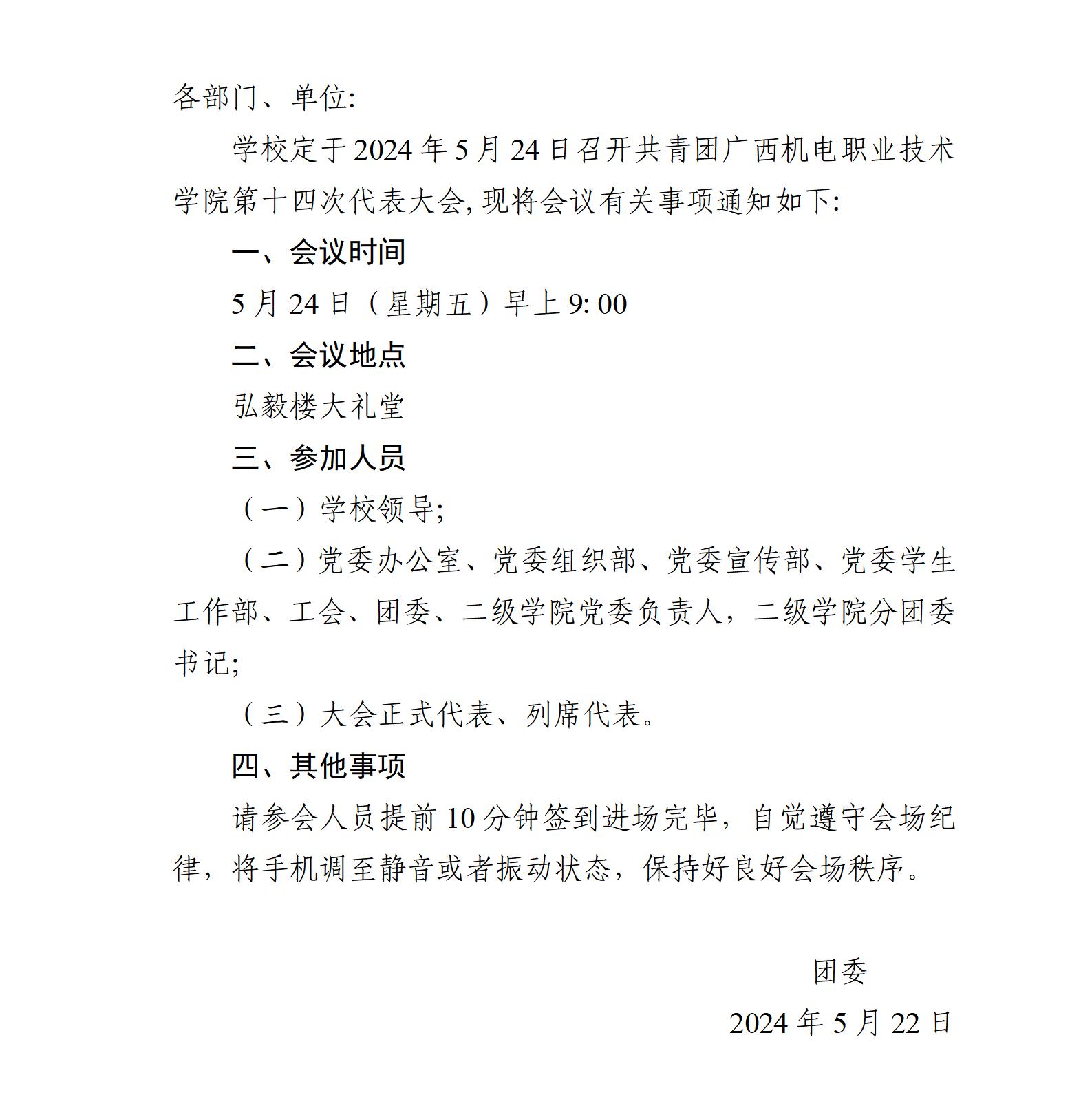 关于召开共青团AC米兰中国官网第十四次代表大会的通知