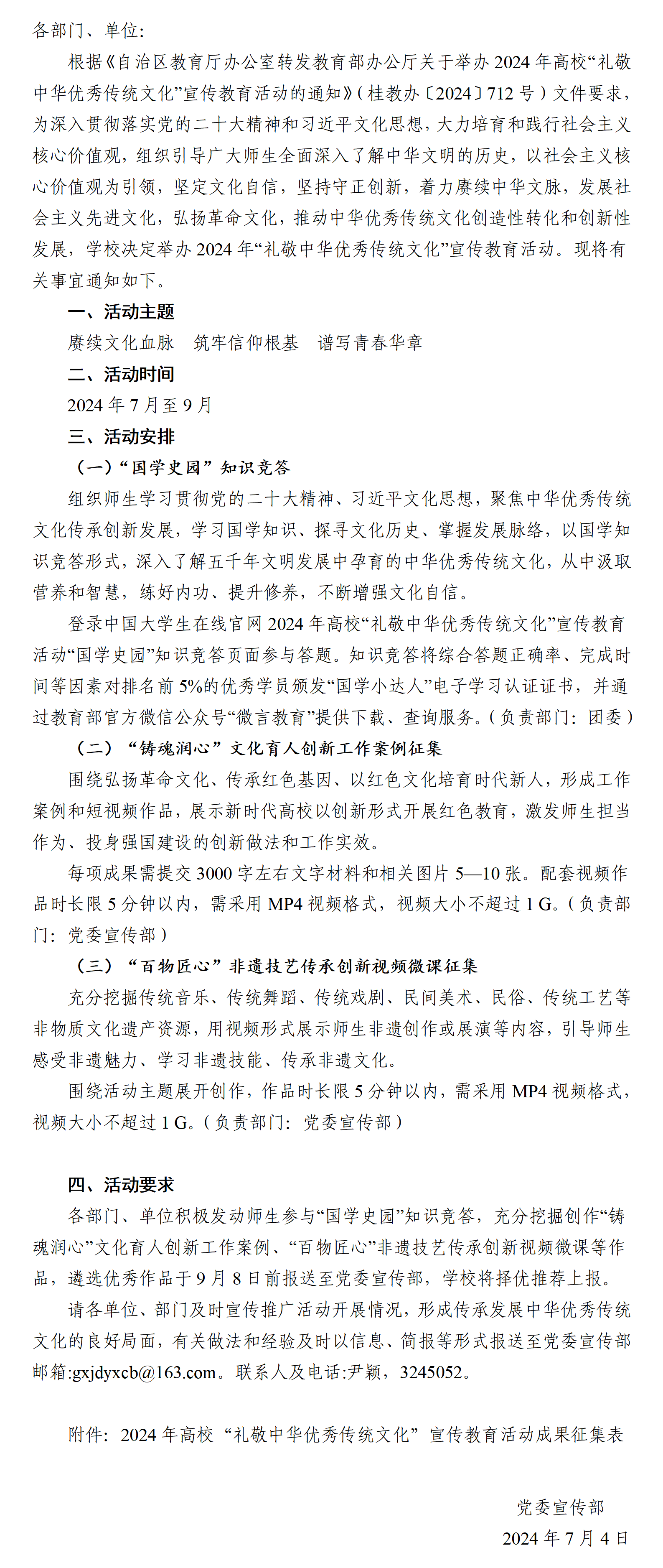 关于举办2024年“礼敬中华优秀传统文化”宣传教育活动的通知