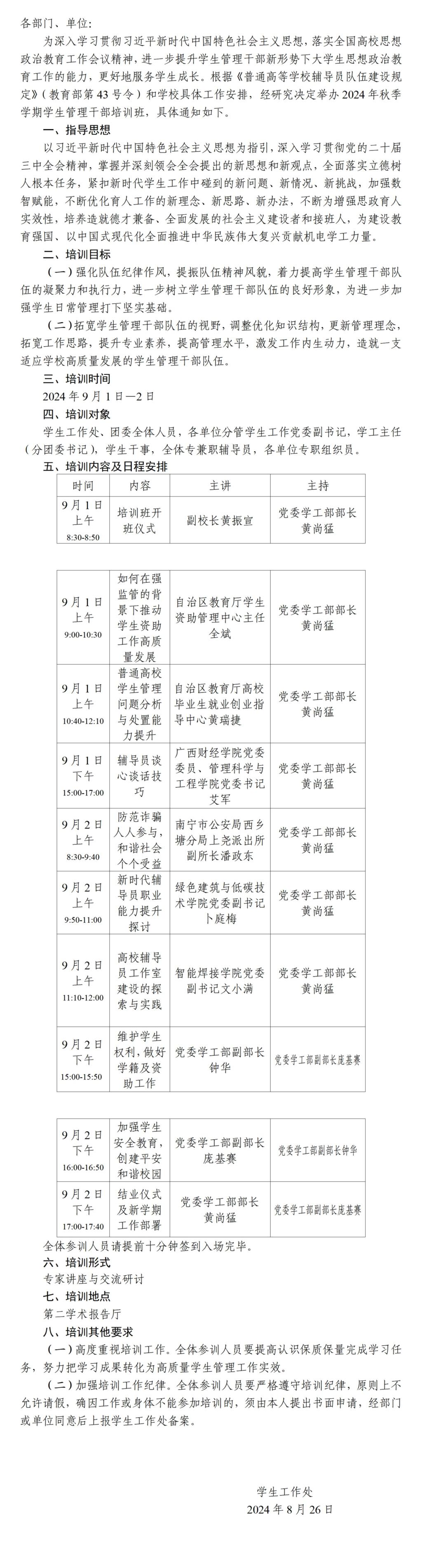 关于举办AC米兰中国官网2024年秋季学期学生管理干部培训班的通知