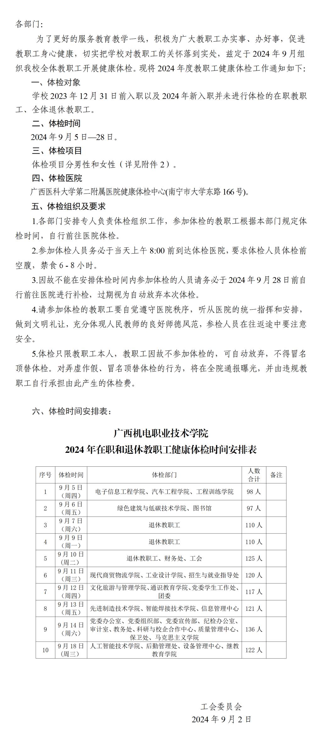 关于组织全校教职工开展2024年度健康体检的通知