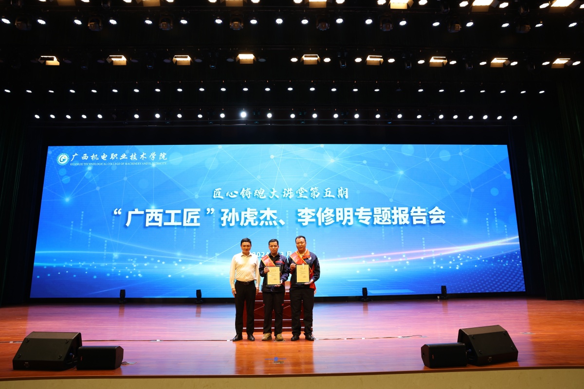 “广西工匠”校友孙虎杰、李修明报告会现场。