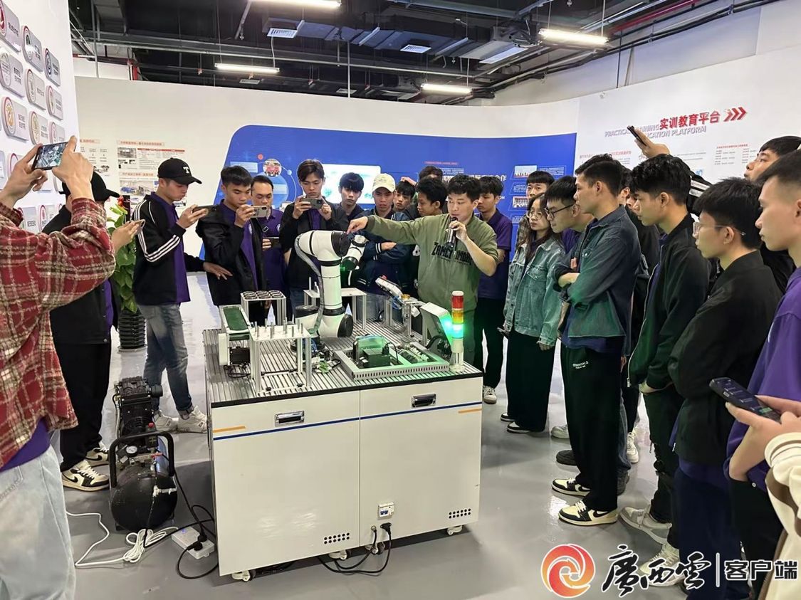 四月初,身文合和其他留学生参加了中国—东盟联合培养学生智能制造研学活动,第一次接触到AI 机器视觉技术,亲手操作训练 AI 大模型进行产品质量检测,这是他在越南从未有过的体验。那一刻,他想起越南老师曾说的话:“未来我们的电子信息产业,需要更多懂中文的技术人才。”他真切感受到中国先进的实训设备和教学体系,如同连接中越技术合作的桥梁。