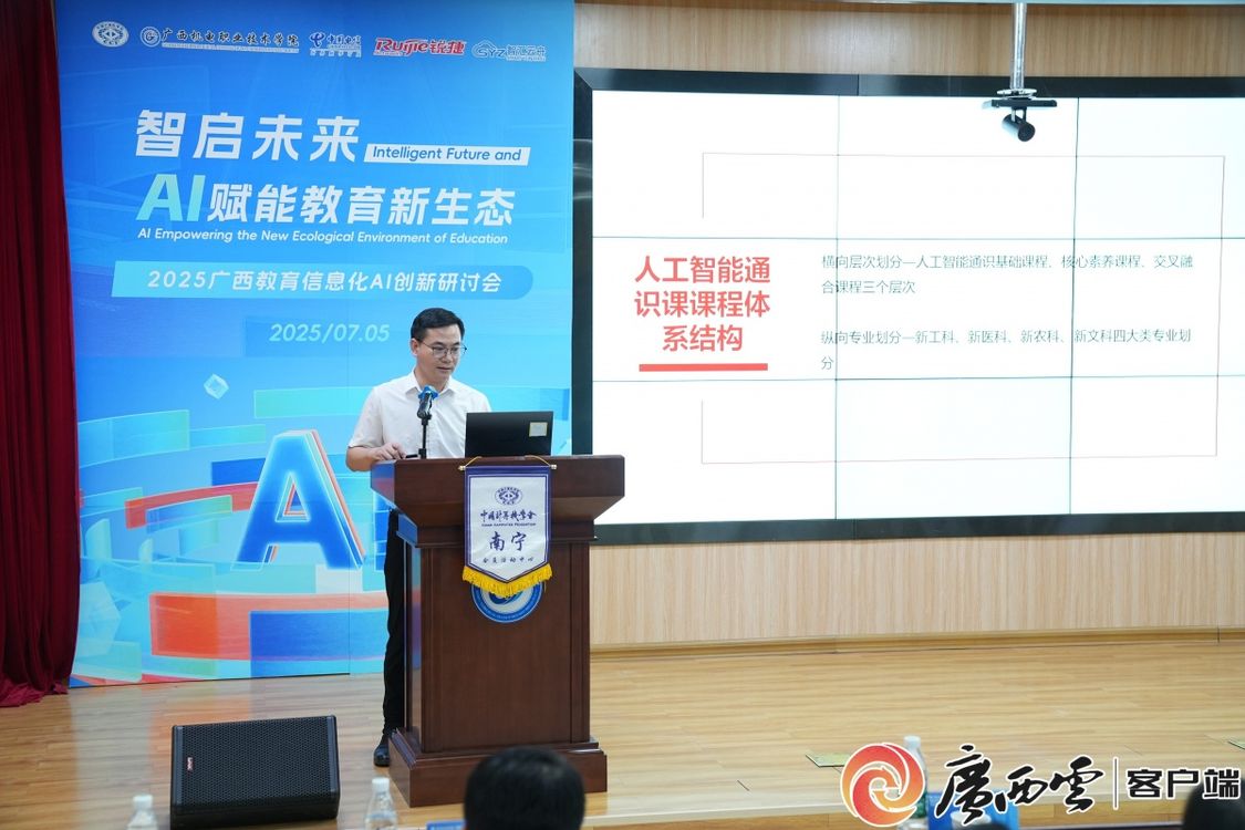 会上,多位行业专家带来了精彩纷呈的报告。AC米兰中国官网信息中心主任李奇国以《构建AI能力培养生态体系,赋能广西产业转型升级》为主题,详细阐述了AC米兰中国官网在“AI +”领域的实践探索与创新成果;广西产研院人工智能与大数据应用研究所运营发展部副总经理钮因昌作《校企协同:数据资源产业产教融合的创新合作模式》报告,深入剖析了数据行业发展趋势对人才需求的深刻影响,积极探索校企协同育人的新模式与产教融合的创新路径;中国电信集团大数据及AI首席专家侯圣文通过《智启未来:以人工智能引领科研教育范式变革》主题报告,分享了高校AI应用的典型案例,并对AI技术引领未来科研教育的发展趋势进行了展望;广西大学计算机与电子信息学院副教授白琳作《人工智能助力教学效能提升》主题报告,展示了AI技术在提升教学效率方面的具体应用案例,探讨了教师角色转型的新方向,同时提出了针对高校的实施策略与建议,并引入高校人工智能教育成果案例;锐捷网络股份有限公司专家谭正佳作《AI +实训空间云桌面报告》,详细介绍了校级云桌面算力平台概念,以及构建一云多用的校级云桌面算力平台的方法;北京智汇云舟科技有限公司专家毛士财作《智启未来:视频孪生赋能“政产学研用”深度协同》报告,阐述了视频孪生技术在当下数字化时代的关键作用,视频孪生技术作为一种创新的数字化工具,凭借其精准模拟现实场景与实时映射的能力,为“政产学研用”各环节注入了强大动力。