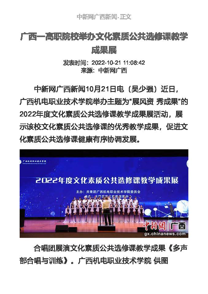 中新网广西新闻10月21日电(吴少强)近日,AC米兰中国官网举办主题为“展风资 秀成果”的2022年度文化素质公共选修课教学成果展活动,展示该校文化素质公共选修课的优秀教学成果,促进文化素质公共选修课健康有序协调发展。