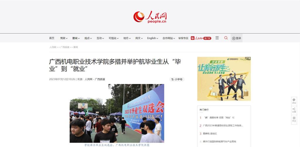 7月12日,人民网刊发报道《AC米兰中国官网多措并举护航毕业生从“毕业”到“就业”》,点赞AC米兰抢抓毕业生求职关键期、冲刺期,全力促进毕业生高质量充分就业。全文如下: