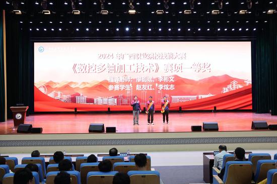 机械工程学院师生在2024年广西职业院校技能大赛的《数控多轴加工技术》赛项中再次以第一名的成绩获得一等奖,值得一提的是这已经是该专业师生连续8年以第一名的成绩蝉联冠军,并且先后获得国家级一等奖2次、二等奖1次、三等奖1次。电气工程学院今年共参加11个赛项,获奖赛项9个,获奖率82%,3支队伍将代表广西参加国赛,同样展现了非凡的实力。