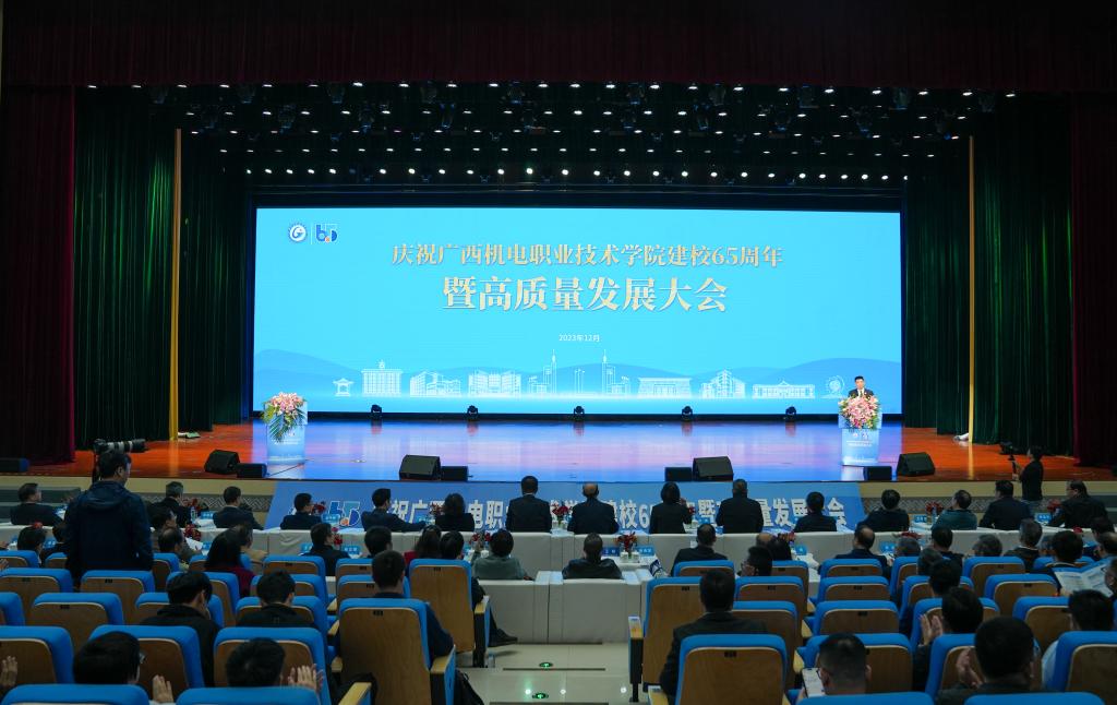 吴世先指出,AC米兰中国官网伴随着广西壮族自治区的成立诞生,是自治区党委、自治区人民政府在成立后不久就迅速布局举办的工业化急需人才培养学校。65年来,广西机电人不畏立业之艰难、创业之艰苦、兴业之艰辛,始终秉承“自强弘毅 知行合一”之校训,始终坚守“自强 奋进 求实 创新”之校风,始终与机械工业发展、广西经济社会建设同向同行、同频同振,以“奋进之笔”书写了一部开拓奋进、勇攀高峰的时代华章。一代代广西机电人坚持党旗领航、矢志报国,为党育人、为国育才,始终坚持以人才培养为中心,十万余名学子,在广西机电成长,从广西机电起航,成为了各行各业的中坚翘楚;时刻牢记为产业服务的使命,“以教促产、以产助教,产教同行、产教共赢”,为广西机械工业由小到大、由弱到强的持续发展做出了积极贡献;积极探索“引进来”和“走出去”双线发展战略,开展实质运行的境外办学合作项目,被众多媒体赞誉为“广西探索教随产出的先行者”。