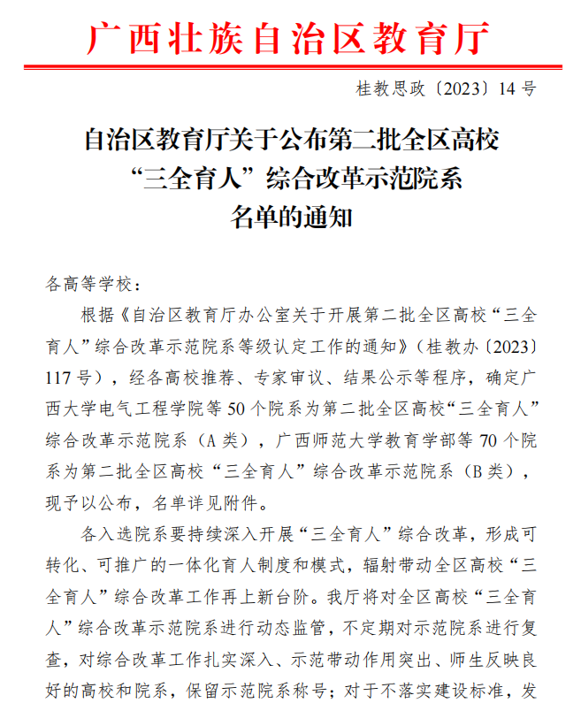 获评全区高校“三全育人”综合改革示范院系(A类)