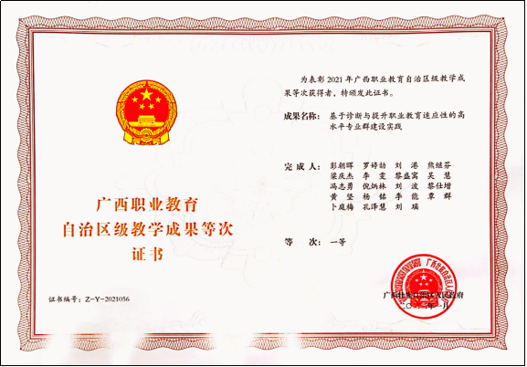 学院育人实践荣获广西职业教育自治区级教学成果“一等奖”