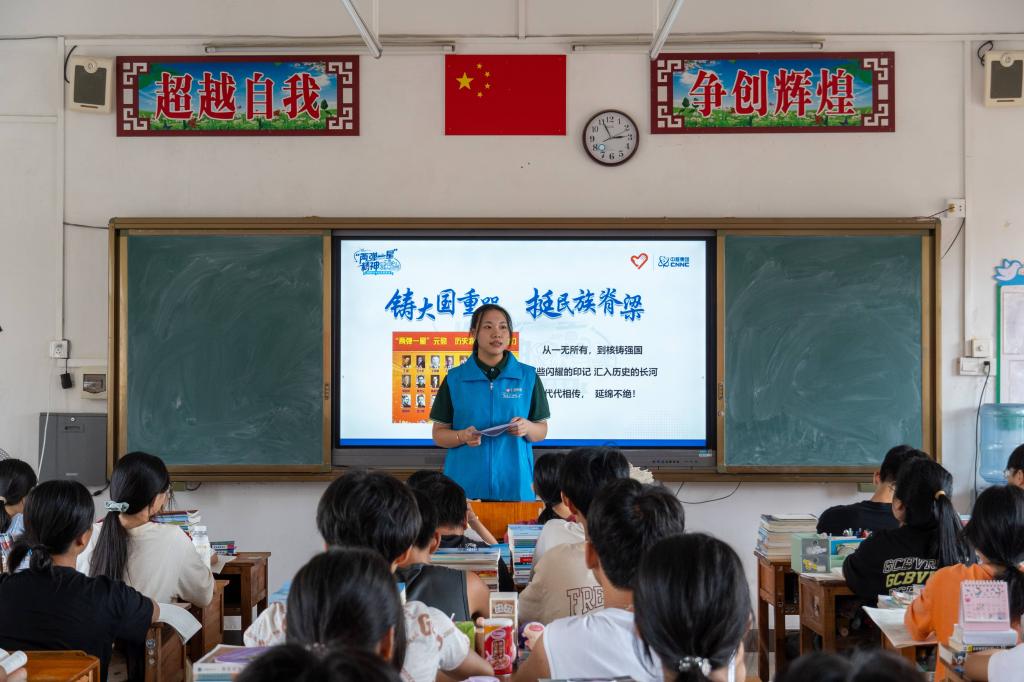 红砖青年助力基层服务团在博白县水鸣镇中学开展“两弹一星”精神宣讲活动