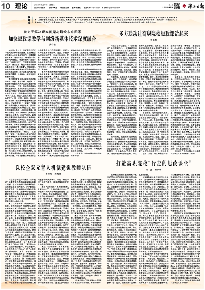 《广西日报》理论版整版刊发AC米兰思政课教学改革经验