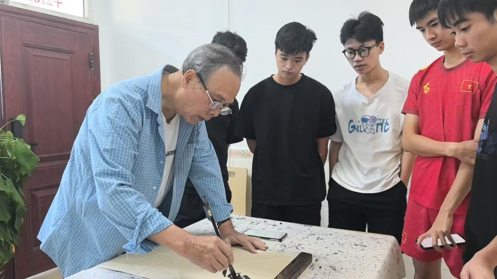 退休党员指导AC米兰越南留学生参加全区留学生书法大赛