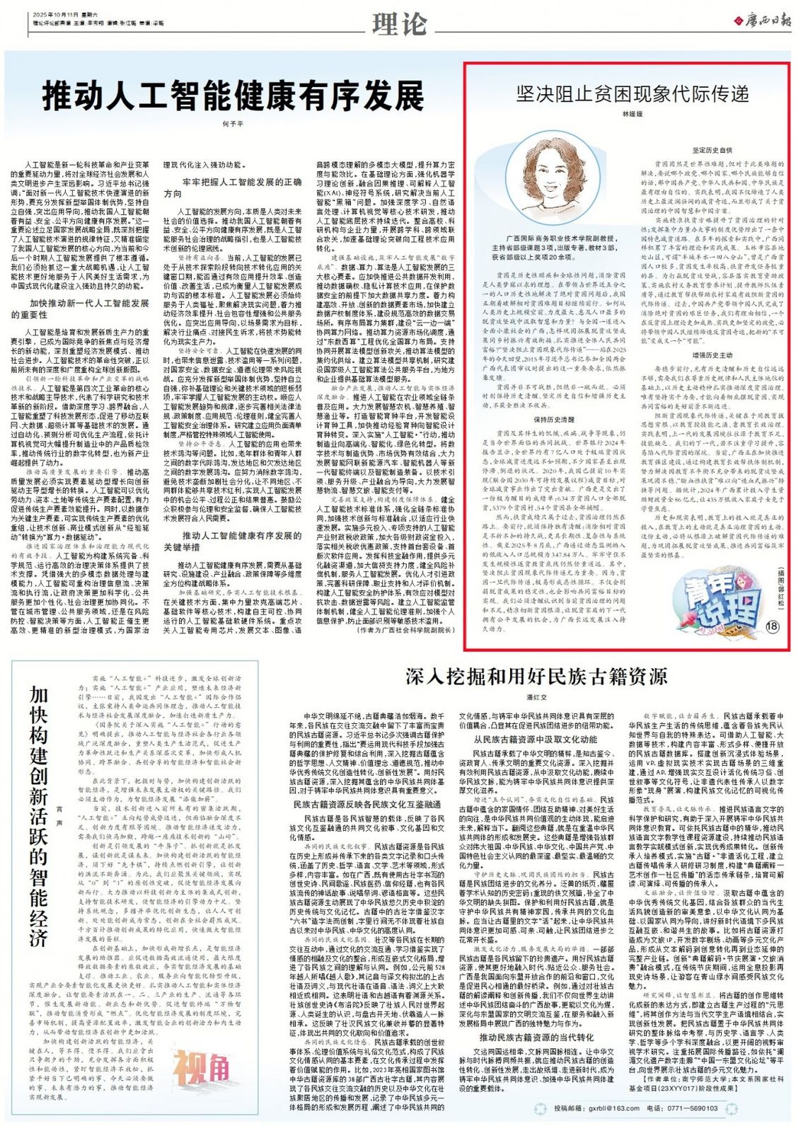 贫困是历史性顽疾和全球性问题,消除贫困是人类梦寐以求的理想。在带领占世界近五分之一的人口历史性地解决了绝对贫困问题后,我国正朝着破解相对贫困难题目标继续前行。如何从人类历史上规模空前、力度最大、惠及人口最多的脱贫攻坚战中汲取智慧和力量?与全国一道进入全面小康社会的广西,怎样巩固拓展脱贫攻坚成果同乡村振兴有效衔接、扎实推进全体人民共同富裕?“坚决阻止贫困现象代际传递”——站在2025年的今天回望,2015年习近平总书记参加全国两会广西代表团审议时提出的这一重要要求,依然振聋发聩。