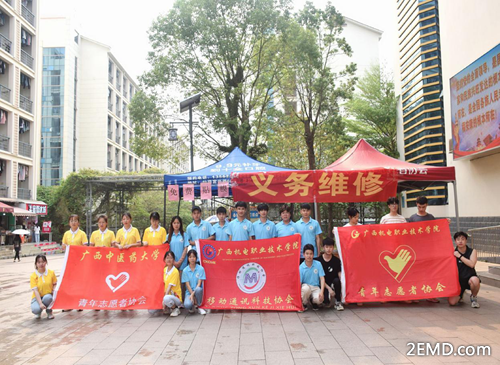 4月24日上午,移动通讯科技协会与青年志愿者协会一起到达了广西中医药大学(仙葫校区),在广西中医药大学的青年志愿者协会带领下简单地参观了学校,然后三个协会一起开展义务维修活动。