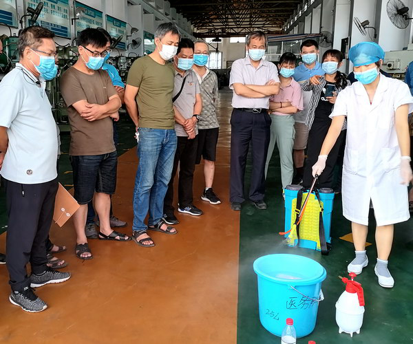 培训中,学院卫生所副所长陈碧燕等医务人员详细地讲解了新冠肺炎防控的基本知识、消毒的方式方法、消毒剂的配制、消毒人员的个人防护、消毒过程中的注意事项、规范的消毒操作流程等知识,并现场进行指导和演示,并就相关工作人员在消毒过程中遇到的实际问题及如何规范操作等进行了答疑解惑。