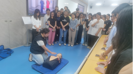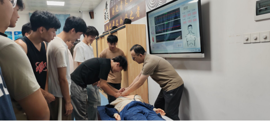 理论课程结束后,师生们来到实训场地,开启了紧张而有序的实操演练环节。在触电急救心肺复苏演练现场,急救培训师通过模拟人教具进行分步示范,从判断现场安全、确认患者意识呼吸,到实施胸外按压、人工呼吸,每一个步骤都进行了细致的操作演示。随后,师生们纷纷上台进行实操练习,培训师在一旁一对一指导,及时纠正不规范动作,确保每个人都能掌握心肺复苏的核心技能。