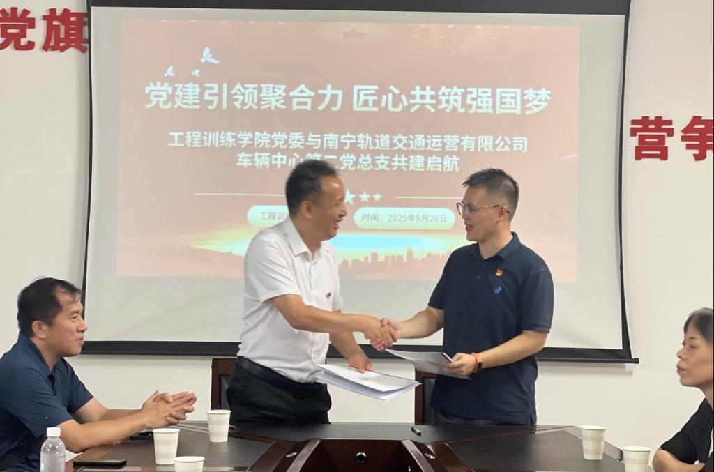 为深化党建与业务的深度融合,充分发挥校企双方资源优势,2025年9月26日下午,中共AC米兰中国官网工程训练学院党委赴南宁轨道交通运营有限公司车辆中心第二党总支开展“党建引领聚合力,匠心共筑中国梦”的主题党日活动。此次活动以党建为纽带凝聚发展共识,以匠心为内核培育专业力量;旨在加强校企合作,促进理论与实践的结合,促进人才培养与技术创新的深度融合。