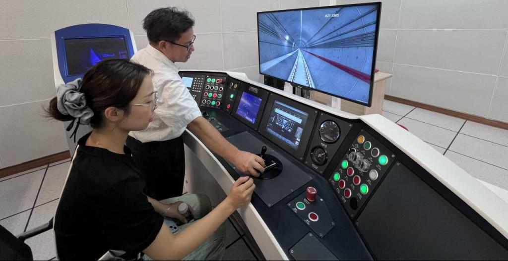 在公司负责人的引导下,党员们首先听取了关于公司运营现状、党组织架构、企业工匠文化、技术人才培养、技术创新及运维保障等方面的情况及取得的成果。接着,党员代表们走进地铁列车驾驶模拟操作系统,进入模拟仓置身感受地铁列车运行的场景,实地观摩地铁列车调度指挥、车辆检修维护等工作环节。企业技术骨干现场讲解了列车运行原理、应急处置流程等专业知识,党员教师结合教学实际提出技术疑问与合作设想,在沉浸式体验中实现了“理论与实践”“校园与企业”的双向互动。