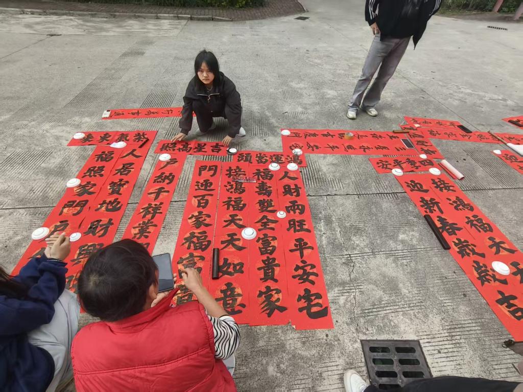 2025年12月20日,我院教师梁宁侃与翰迹书画协会学生联动,在学校开展 “翰墨迎马年 春联送福来” 公益活动,为学校教职工送去新春祝福与文化暖意;活动现场,几位教师与学生挥毫泼墨,“骏蹄踏雪千门瑞,鸿翼乘风万户春”,“跃马扬鞭开新局,宏图大展启华章” 等马年特色春联和传统通用春联一气呵成,苍劲笔触与喜庆红宣相映成趣。教职工们围站桌旁,挑选心仪联句,有的家庭还带着孩子体验书写,感受笔墨间的年味与传统魅力;此次活动既让手写春联的传统韵味回归生活,更以笔墨传递马年奋进之志与邻里温情,为新春增添浓浓文化氛围。
