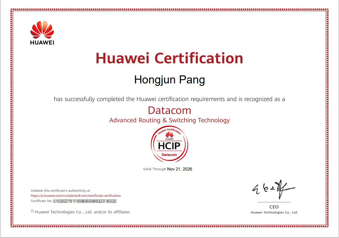 计算机网络基础、路由器与交换机原理及配置、HCIP认证课程、网络系统集成与工程设计、综合布线技术、Linux操作系统、数据库Oracle、网络攻防技术、JavaWeb技术应用、网络安全应用技术、计算机网络系统管理、网络工程项目实战等。