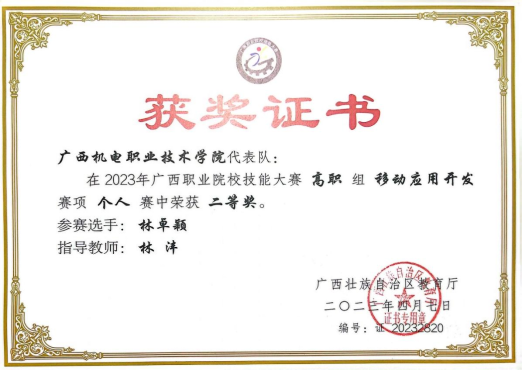 2019、2020年广西职业院校技能大赛“移动互联网应用软件开发”赛项三等奖
