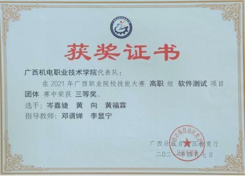 2021年广西职业院校技能大赛“软件测试”赛项三等奖