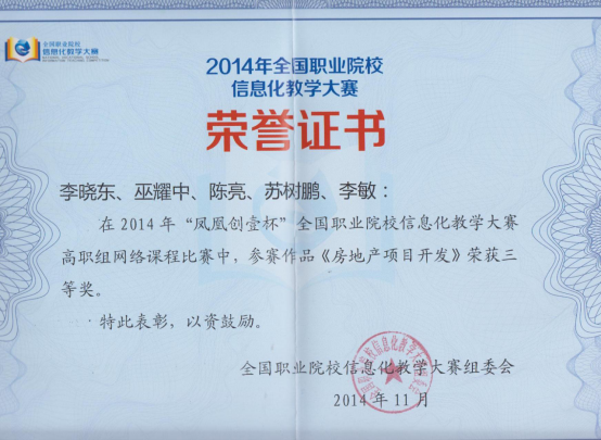 2015年第五届全国职工职业技能大赛计算机程序设计员决赛荣获团体第10名