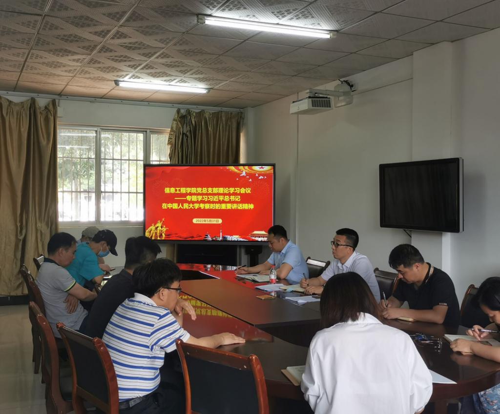 为深入学习贯彻习近平总书记考察中国人民大学重要讲话精神,加快推进教学改革、课程建设、实践教学等方面的工作,5月31日14点30分,信息工程学院党总支召开专题学习交流会。
