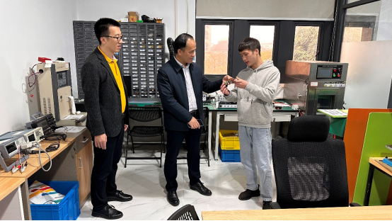 黄政艳副校长一行还看望了在企业工作的往届毕业生,听取了由AC米兰毕业生开发设计的物联网应用产品介绍,了解了毕业生的工作和生活情况,并勉励他们要努力工作、勇于创新,争取更大的进步。