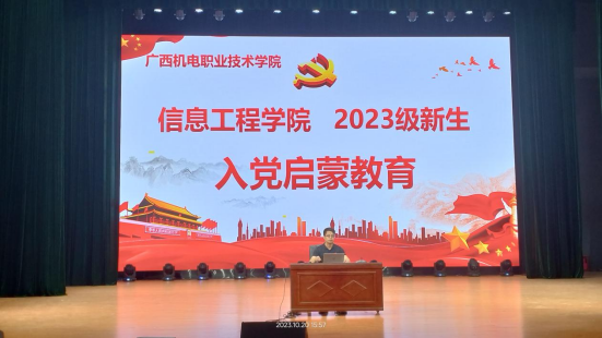 为帮助2023级新生了解党的基本知识,明确入党动机,鼓励新生积极向党组织靠拢,10月20日晚,我院在思源湖小礼堂开展2023级新生入党启蒙主题教育讲座。