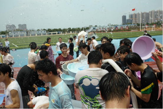 13 点整,泼水节活动正式拉开帷幕。工作人员首先向在场师生详细介绍了泼水节的文化意义,特别欢迎了来自老挝的留学生代表。随后,泼水狂欢环节将活动推向了高潮。同学们手持水枪、水桶,互相泼水祝福,欢笑声此起彼伏,整个校园都沉浸在欢乐的海洋中,通过参与活动也促进了不同文化之间的交流与融合。