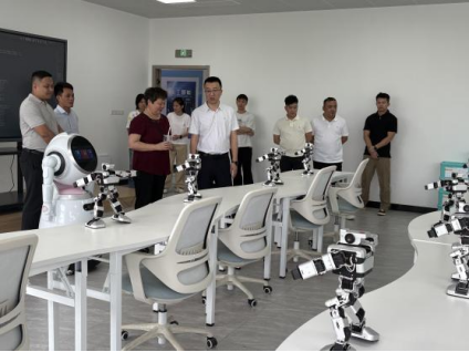会前,邓文达院长一行在张泽民院长的陪同下来到我院人工智能创新实训中心参观考察。在虚拟现实技术实训区,体验了智能网联汽车仿真系统和沉浸式人机交互项目;在智能机器人研发中心,由我院师生团队自主研发的机器人舞蹈展示获得了调研团队的一致好评。邓文达院长表示,这些前沿技术的教学应用充分展现了人工智能技术学院在人工智能人才培养方面的特色优势。