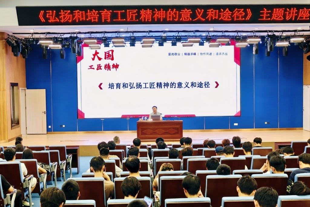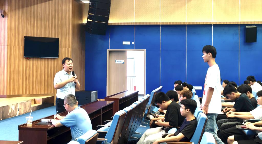 为了帮助同学们对“工匠”精神有更好的理解,孙虎杰深入阐释了工匠精神的丰富内涵,他以生动比喻诠释了“匠”是在专业领域对自身“斤斤计较”、历经磨砺成长的人。为让理念更易理解,他引入“无序运动”概念,对比有目标与无目标状态下的行为差异,以同学们的日常行为为例指出,当同学们每天没有目标时,很多人容易陷入刷视频等“即时快感”的陷阱,消耗时光,荒废了技能提升。而一旦有了目标时,才能像“精准导航”的选手,专注技术提升,突破自我。谈及技能成才路径,他指出目前主要通过赛事,如全国技能比赛与导师培养。全国技能大赛是“快速升级通道”,跟紧导师是“站在巨人肩膀上成长”,他还详细解读了相关政策激励,激励同学们深耕专业,让同学们看清了“技能成才真的有出路、能出彩”。