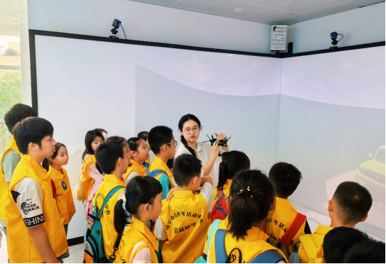 在元宇宙新质生产力实训实践中心,一场名为“趣探AI与VR:开启未来科技冒险行”的主题活动正在开展。小学员们站在虚拟现实CAVE系统前,眼里充满了好奇与惊叹。通过虚拟现实CAVE系统“拆解”汽车,用裸眼3D笔记本进行科普教学模块体验和射击游戏体验,戴上VR眼镜体验沉浸式绘画与动画等,在虚拟现实中进一步体验了科技的魅力。