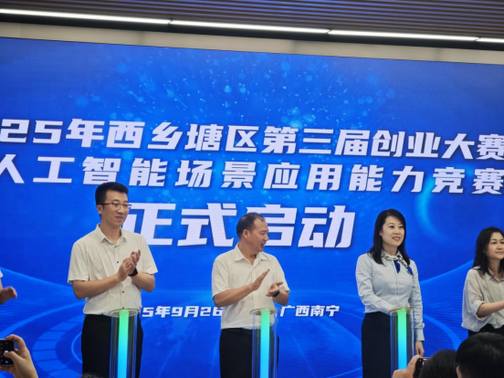 启动仪式上,张泽民院长上台与各界嘉宾共同按下竞赛启动按钮,标志着西乡塘区第三届创业大赛暨人工智能场景应用能力竞赛正式启动。