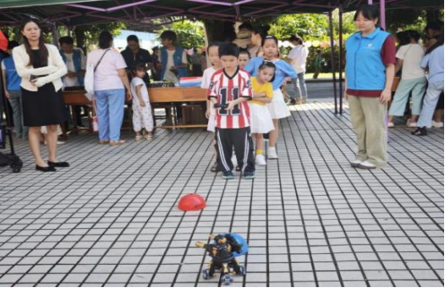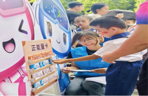 在活动现场,我院青年志愿服务者积极参与三大板块志愿服务。科技体育科展区成为焦点,无人机编队表演引得孩子们欢呼连连,AI机器人电子对抗赛等项目将爱国教育与科技实践深度融合。教务活动科展区“情绪释放站”通过趣味心理游戏疏导青少年压力,中秋灯谜区悬挂的50余条原创灯谜将传统文化与时代精神巧妙结合。书法美术科展区拓印“云墨木韵”木刻雕版,志愿者手把手教孩子们在宣纸上拓印出五星红旗图案,超轻黏土手工营里百余件"我爱祖国"主题作品渐次成型。