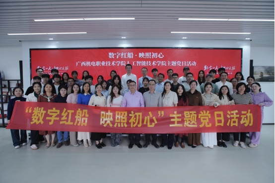 为深入学习贯彻党的二十届四中全会精神,创新党员教育形式,强化党建引领育人实效,11月17日,我院党委组织教工第一、第二、第三党支部和学生第一党支部的师生党员及入党积极分子,前往《数字一大·初心之旅》(广西站)茜英沉浸式探索大空间开展“数字红船映照初心”主题党日活动。本次活动通过沉浸式体验、专题学习、实践交流等多元形式,激发党性觉悟,强化使命担当,让红色基因融入血脉,让初心使命扎根心底。