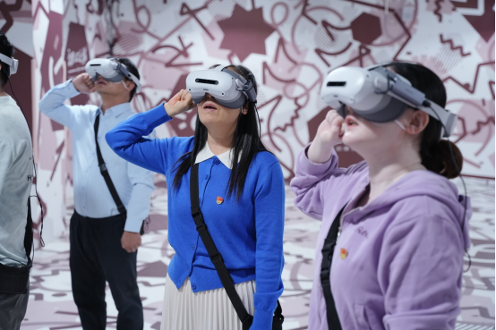 活动伊始,全体人员走进展馆的VR体验区,师生党员通过《数字一大·初心之旅》项目,“穿越”至1921年的上海,身临其境亲历“伟大开端”,了解中国共产党为什么会在上海诞生的党史故事和伟大精神。逼真的场景还原、生动的历史叙事,让大家沉浸式重温红色历史,仿佛亲历中共一大召开的峥嵘岁月,深刻感悟革命先辈坚守初心、砥砺前行的崇高精神。《海洋奇幻之旅》则在“大空间”技术逐渐成熟的市场环境下,加入了“手部识别”交互功能和定位“脚步识别”功能,以科技视角展现海洋生态与资源开发,给体验者讲述不为人知的“中国海洋环境工作者”和团队为恢复祖国海域的生态奉献青春和生命的故事,激发党员们对科技创新与国家战略的思考,体现“红船精神”与时代发展的深度融合。
