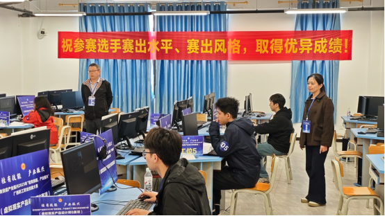 党支部深刻认识到,承办全区性数字技能大赛,是服务地方数字技能人才培养、助推数字经济产业发展的重要实践。这正与党支部持续推进的“强国行”活动中的“教育服务”专项高度契合,即聚焦教育强国建设,面向地方教育事业发展需求,以技能培训等方式,服务支持地方教育事业发展。党支部将参与大赛承办工作列为一项重大政治任务,精心选派了政治素质过硬、专业能力突出的四名党员骨干,分别承担赛项裁判长及赛务组织、技术保障等核心职责,确保党组织的战斗力体现在赛事最关键、最吃劲的岗位上。