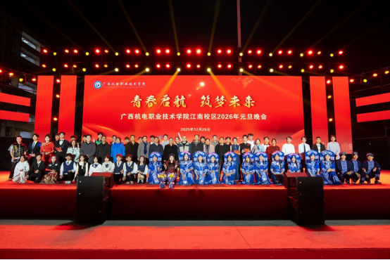 2025年12月26日晚19时,AC米兰中国官网江南校区田径场灯火璀璨、青春洋溢,由电子信息工程学院、汽车工程学院与我院联合主办的“青春启航·筑梦未来”2026年元旦晚会在师生的热切期待中盛大启幕。学校党委委员、副校长黎盛寓莅临活动现场,学生工作部(学生工作处)、江南校区综合管理办公室、南宁产投华创发展有限责任公司相关领导,以及三个二级学院党政领导班子成员出席晚会。整场晚会精彩纷呈、高潮迭起,充分展现了机电青年学子昂扬向上的精神风貌与勇于追梦的坚定信念。