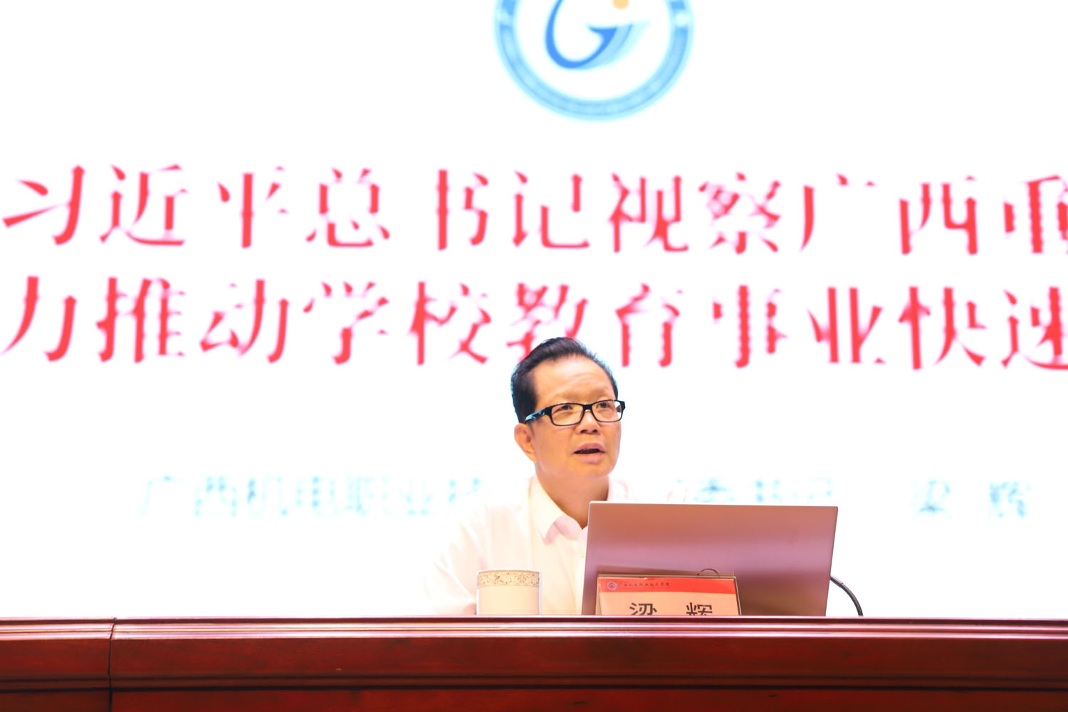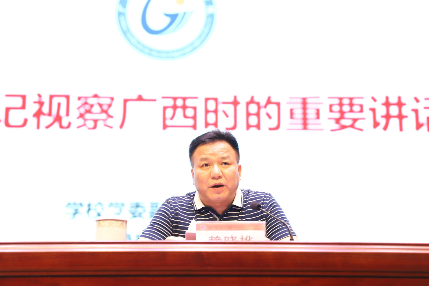 2021.5.6日,学校召开全体教职工大会,梁辉书记作《学习贯彻习近平总书记视察广西重要讲话精神全力推动学校教育事业快速发展》专题报告,赖晓桦校长作《传达学习习近平总书记视察广西时的重要讲话和重要指示精神》专题报告,陈科鹤副书记主持大会。基建处职工积极参加了本次大会。 梁辉书记作《学习贯彻习近平总书记视察广西重要讲话精神全力推动学校教育事业快速发展》专题报告 赖晓桦校长作《传达学习习近平总书记视察广西时的重要讲话和重要指示精神》专题报告 陈科鹤副书记主持本次大会 全体教职工参加本次大会