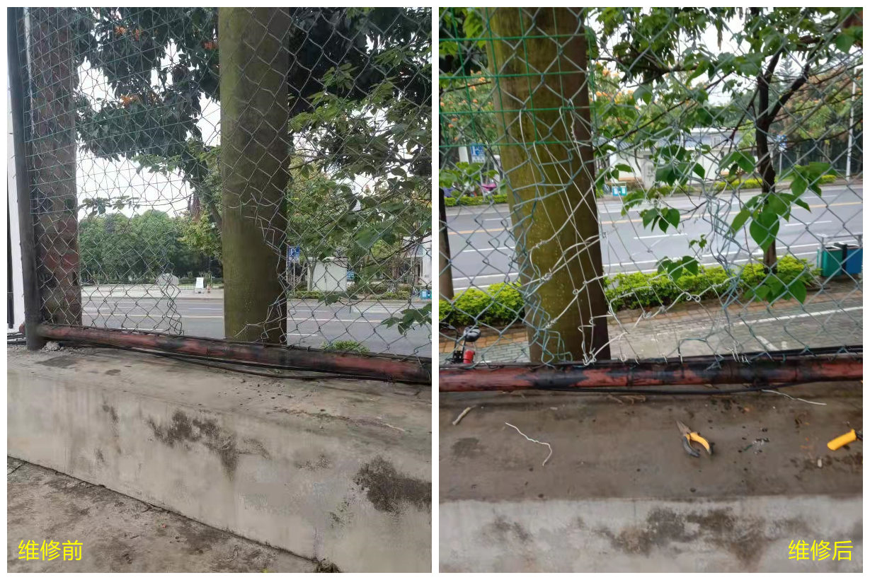 3月28日经巡查,发现学院部分围墙出现破损,为防止外来人员及校内学生翻墙进出,筑牢学院疫情下封闭式管理的防线,我处迅速组织维修人员进行维修,经过一天的紧张维修,学院围墙破损处已全部维修完毕。