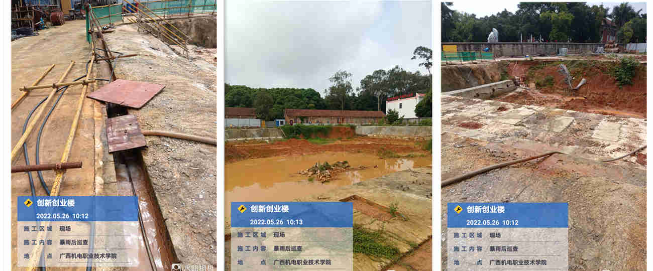 强降雨过后,基建处继续盯紧重点部位、守好风险点位,加强雨后风险排查和次生灾害防范。我处联系创新创业大楼项目部负责人第一时间使用抽水机对基坑进行抽水,防范次生灾害,全力保障校园安全。