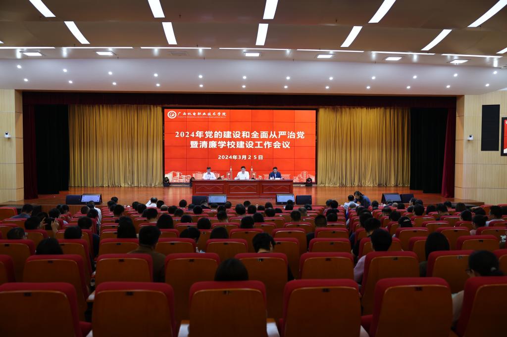 黄小敬在讲话中首先回顾了2023年学校党的建设和清廉学校建设工作取得的显著成效,分析了全面从严治党的新形势新要求,他强调,要全面贯彻落实党的二十大和二十届二中全会精神,深入学习贯彻习近平总书记关于党的自我革命的重要思想,把党中央关于全面从严治党的决策部署落到实处。他强调,要深入学习贯彻习近平总书记关于党的自我革命的重要思想,准确把握党的建设和全面从严治党新形势新任务新要求,切实增强以自我革命精神推进全面从严治党的思想自觉、政治自觉和行动自觉。要聚焦重点任务,准确把握“九个以”实践要求持续发力,纵深推进全面从严治党和清廉学校建设取得新成效。要压紧压实责任,强化制度机制保障,融会贯通提升全面从严治党能力,学方略、谋创新、抓落实,加快推进广西领先、国内一流、国际知名的高水平智能制造特色校建设,以实际行动迎接学校第三次党代会的胜利召开,以优异成绩庆祝新中国成立75周年。