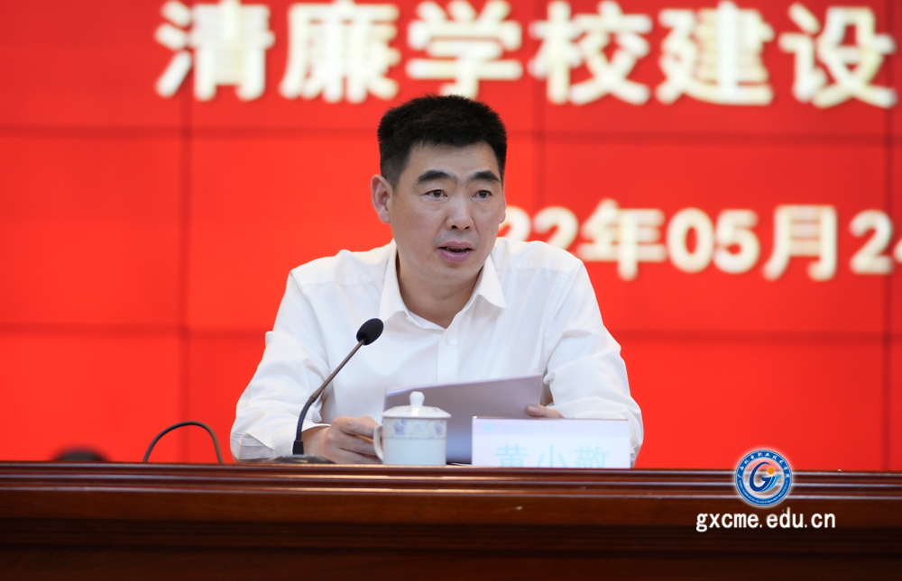 黄小敬指出,今年是党的二十大召开之年,做好全面从严治党和清廉学校建设工作意义重大、责任重大。他提出了三点要求:一是深入学习习近平总书记关于全面从严治党重要论述和党的自我革命战略思想,切实增强推进全面从严治党和清廉学校建设的责任感、使命感和紧迫感。二是聚焦主题主线,突出工作重点,坚定不移推进全面从严治党和清廉学校建设向纵深发展。要坚持以党的政治建设为统领,坚守全面从严治党根本政治方向,在捍卫“两个确立”、做到“两个维护”上展现新担当;要坚持以习近平新时代中国特色社会主义思想铸魂育人,不断夯实自我革命战略思想基础,在强化理论武装上取得新成效;要坚持大抓基层的鲜明导向,不断夯实管党治党、办学治校的组织基础,在强基固本上务求新突破;要坚持严的主基调不松劲,持之以恒正风肃纪反腐,在涵养校园政治生态上树立新形象;要坚持把制度建设作为推进全面从严治党的重要保障,着力提高治理效能,在完善廉政风险防控机制上采取新举措。三是强化组织领导,压紧压实责任,久久为功推动学校全面从严治党和清廉学校建设落地见效。