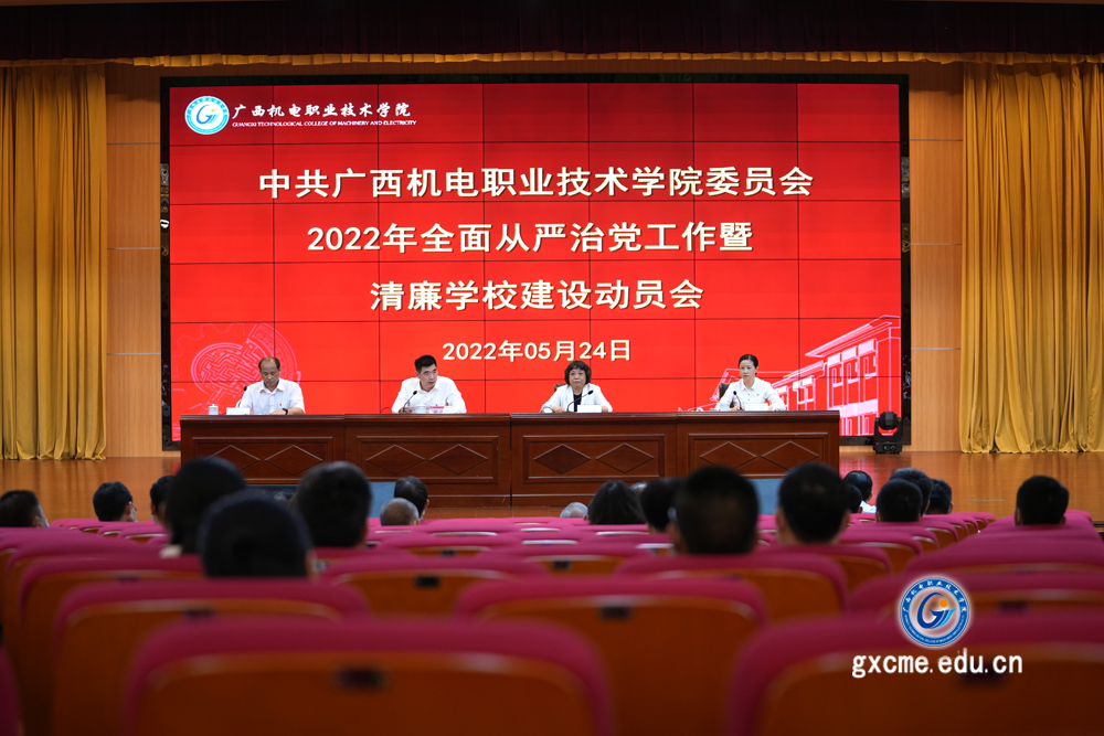 5月24日下午,学校党委在博远楼小礼堂召开2022年全面从严治党工作暨清廉学校建设动员会。在家校领导黄小敬、陈科鹤、陈勇、梁庆杰、黄政艳、林华出席会议,驻工信厅纪检监察组副组长马良清到会指导,会议由校党委副书记陈科鹤主持。