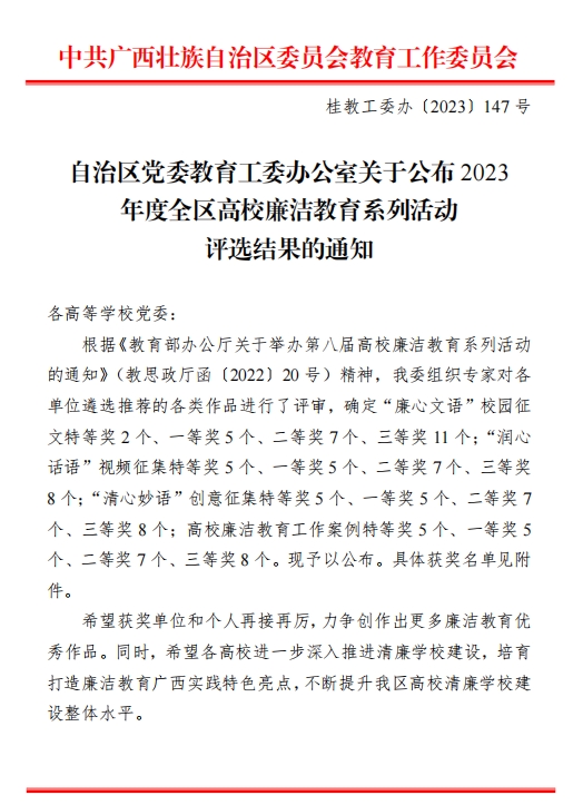 AC米兰在2023年度全区高校廉洁教育系列活动评选中喜获佳绩