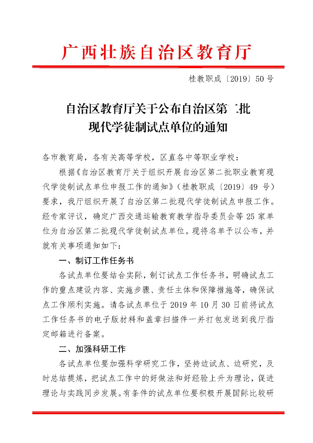 关于公布自治区第二批现代学徒制试点单位的通知