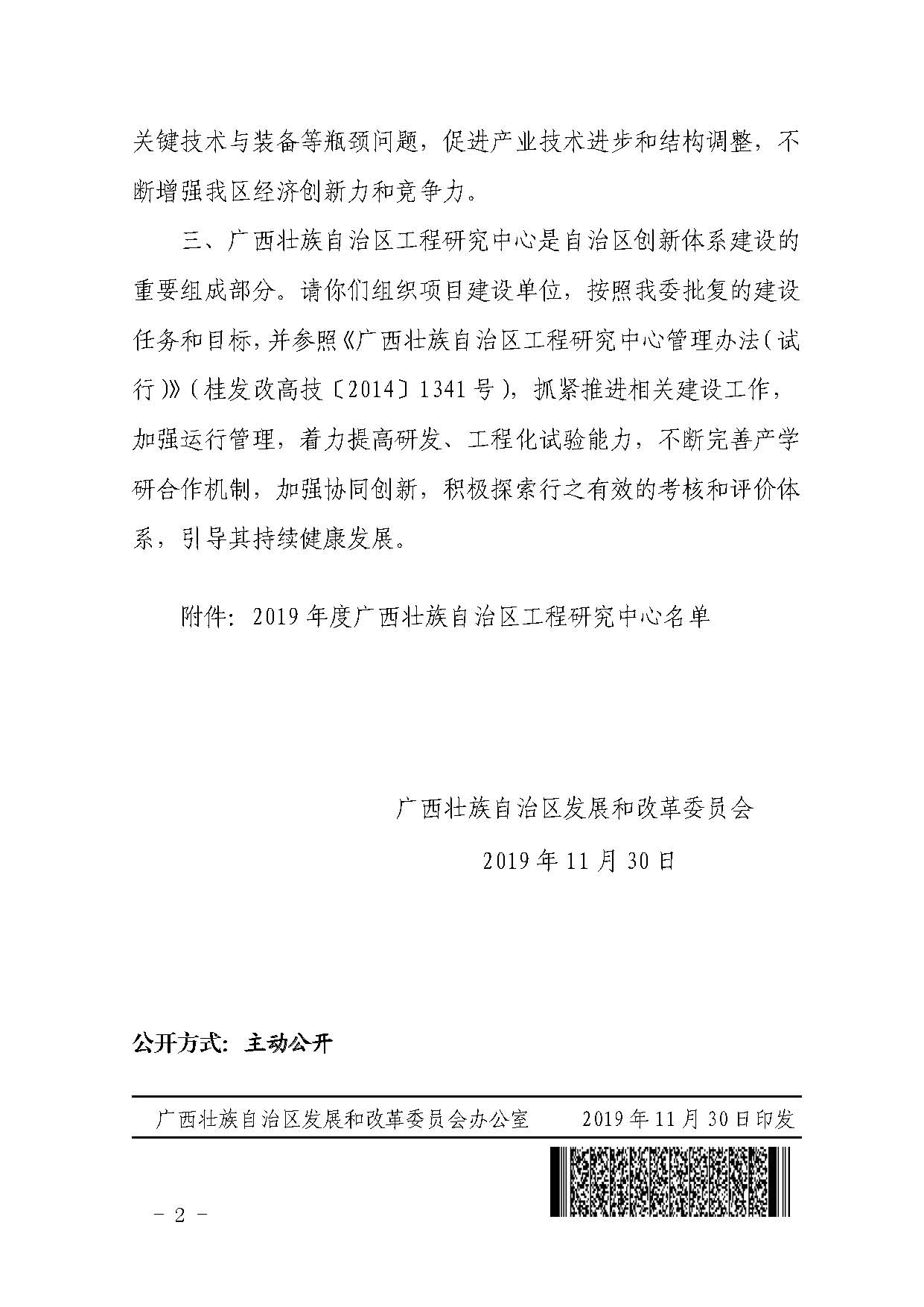 关于2019年度广西壮族自治区工程研究中心申请报告的批复